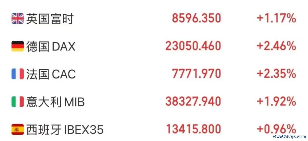 欧洲股市全线大涨,截至收盘,欧洲主要股指抹去特朗普宣布“对等关税”政策以来的所有跌幅。