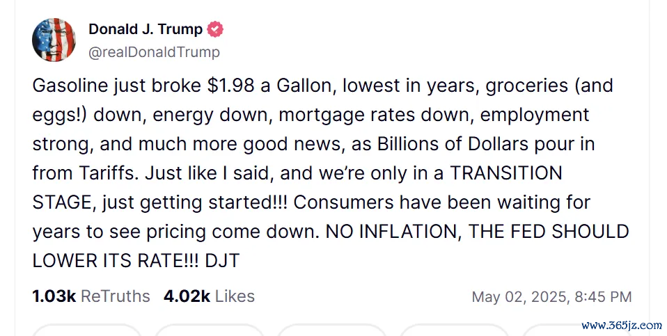 在非农就业报告发布后几分钟内,美国总统特朗普在社交媒体上表示,美国没有通货膨胀,美联储应该降低利率。